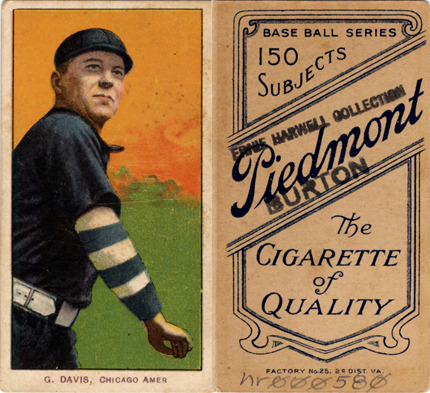 Portrait of George Davis, baseball player for the Chicago White Sox. White Borders (T206) series. Printed on front: "G. Davis, Chicago Amer." Printed on back: "Piedmont, the cigarette of quality. Base ball series, 150 subjects. Factory no. 25, 2d. dist. Va."