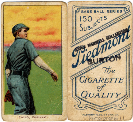 Portrait of Bob Ewing, baseball player for the Cincinnati Reds. White Borders (T206) series. Printed on front: "Ewing, Cincinnati." Printed on back: "Piedmont, the cigarette of quality. Base ball series, 150 subjects. Factory no. 25, 2d. dist. Va."