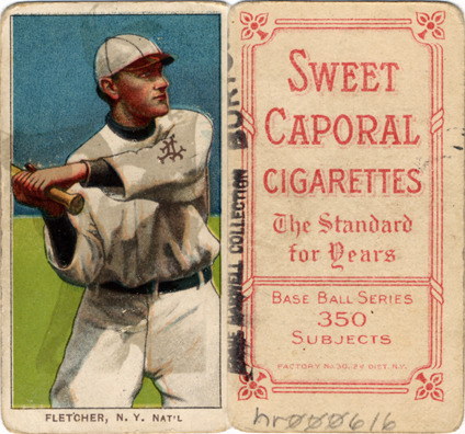 Portrait of Art Fletcher, baseball player for the New York Giants. White Borders (T206) series. Printed on front: "Fletcher, N.Y. Nat'l." Printed on back: "Sweet Caporal cigarettes, the standard for years. Base ball series, 350 subjects. Factory no. 30, 2d. dist. N.Y."
