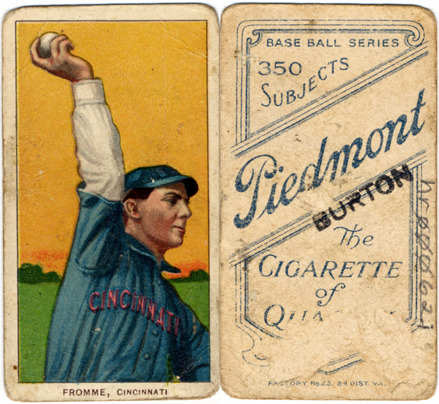 Portrait of Art Fromme, baseball player for the Cincinnati Reds. White Borders (T206) series. Printed on front: "Fromme, Cincinnati." Printed on back: "Piedmont, the cigarette of qua[lity]. Base ball series, 350 subjects. Factory no. 25, 2d. dist. Va."