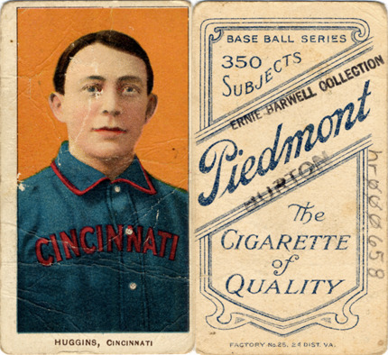 Portrait of Miller Huggins, baseball player for the Cincinnati Reds. White Borders (T206) series. Printed on front: "Huggins, Cincinnati." Printed on back: "Piedmont, the cigarette of quality. Base ball series, 350 subjects. Factory no. 25, 2d. dist. Va."