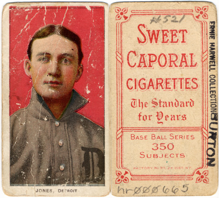 Portrait of Davy Jones, baseball player for the Detroit Tigers. White Borders (T206) series. Printed on front: "Jones, Detroit." Printed on back: "Sweet Caporal cigarettes, the standard for years. Base ball series, 350 subjects. Factory no. 30, 2d. dist. N.Y." Handwritten on back: "#521."