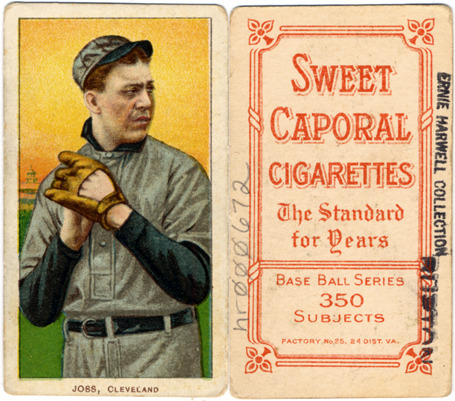 Portrait of Addie Joss, baseball player for the Cleveland Naps. White Borders (T206) series. Printed on front: "Jordan, Brooklyn." Printed on back: "Sweet Caporal cigarettes, the standard for years. Base ball series, 350 subjects. Factory no. 30, 2d. dist. N.Y."