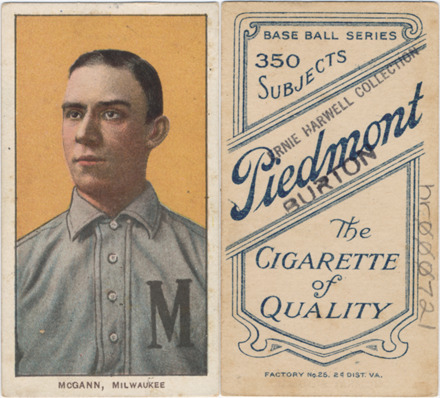 Portrait of Dan McGann, baseball player for the Milwaukee Brewers. White Borders (T206) series. Printed on front: "McGann, Milwaukee." Printed on back: "Piedmont, the cigarette of quality. Base ball series, 350 subjects. Factory no. 25, 2d. dist. Va."