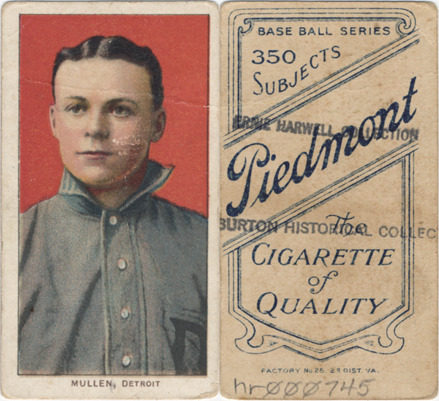 Portrait of George Mullin, baseball player for the Detroit Tigers. White Borders (T206) series. Printed on front: "Mullen [sic], Detroit." Printed on back: "Piedmont, the cigarette of quality. Base ball series, 350 subjects. Factory no. 25, 2d. dist. Va."