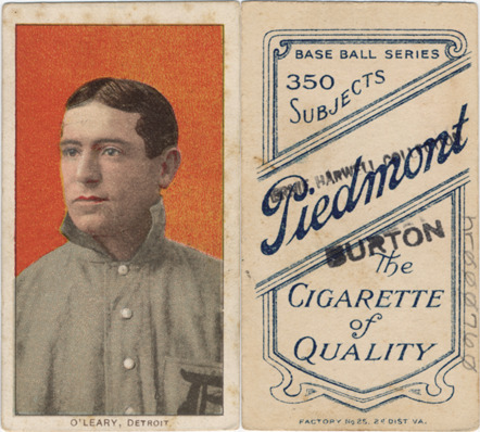 Portrait of Charley O'Leary, baseball player for the Detroit Tigers. White Borders (T206) series. Printed on front: "O'Leary, Detroit." Printed on back: "Piedmont, the cigarette of quality. Base ball series, 350 subjects. Factory no. 25, 2d. dist. Va."