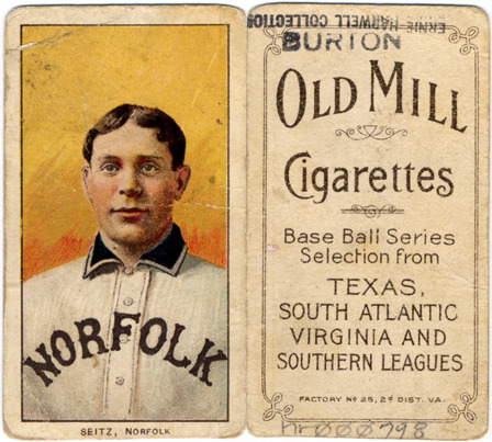 Portrait of baseball player Charles Seitz. White Borders (T206) series. Printed on front: "Seitz, Norfolk." Printed on back: "Old Mill cigarettes. Base ball series. Selection from Texas, South Atlantic, Virginia and Southern Leagues. Factory no. 25, 2d. dist. Va."