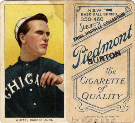 Portrait of Doc White, baseball player for the Chicago White Sox. White Borders (T206) series. Printed on front: "White, Chicago Amer." Printed on back: "Piedmont, the cigarette of quality. New base ball series, 350-460 subjects. Factory no. 25, 2d. dist. Va."
