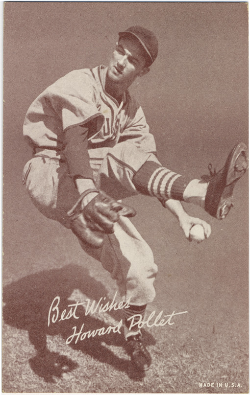 Favorite this☆ Howie Pollet Description: Portrait of Howie Pollet, pitcher for the St. Louis Browns. Salutation Exhibits (W462) series. Printed on front: "Best wishes, Howard Pollet. Made in U.S.A." Details Resource ID: hr001023 Subject: Pollet, Howie (Howard Joseph), 1921-1974 Pitchers (Baseball)--Missouri--Saint Louis St. Louis Browns (Baseball team) Baseball cards Publisher: Exhibit Supply Company Date Issued: 1939 to 1946 Format: 1 baseball card ; 5.5 x 3.5 in. Member of: Ernie Harwell Sports Collection Filing Location: Baseball cards-Exhibit Supply Company-Salutation Exhibits (W462)-1939-1946-Pollet, Howie Rights: Physical rights are retained by DPL. Copyright is retained in accordance with U.S. copyright laws.
