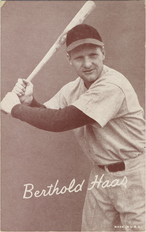 Favorite this☆ Bert Haas Description: Portrait of first baseman Bert Haas. Exhibits (W462) series. Printed on front: "Berthold Haas. Made in U.S.A." Details Resource ID: hr001098 Subject: Haas, Bert (Berthold John), 1914-1999 Baseball players Baseball cards Publisher: Exhibit Supply Company Date Issued: 1947 to 1966 Format: 1 baseball card ; 5.5 x 3.5 in. Member of: Ernie Harwell Sports Collection Filing Location: Baseball cards-Exhibit Supply Company-Exhibits (W462)-1947-1966-Haas, Bert Rights: Physical rights are retained by DPL. Copyright is retained in accordance with U.S. copyright laws.