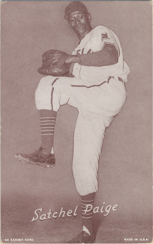 Favorite this☆ Satchel Paige Description: Portrait of Cleveland Indians pitcher Satchel Paige. Exhibits (W462) series. Printed on front: "An Exhibit card. Satchel Paige. Made in U.S.A." Details Resource ID: hr001137 Subject: Paige, Satchel, 1906-1982 Pitchers (Baseball)--Ohio--Cleveland African American baseball players--New York (State)--New York Cleveland Indians (Baseball team) Baseball cards Publisher: Exhibit Supply Company Date Issued: 1947 to 1966 Format: 1 baseball card ; 5.5 x 3.5 in. Member of: Ernie Harwell Sports Collection Filing Location: Baseball cards-Exhibit Supply Company-Exhibits (W462)-1947-1966-Paige, Satchel Rights: Physical rights are retained by DPL. Copyright is retained in accordance with U.S. copyright laws.