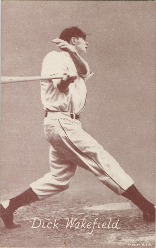 Favorite this☆ Dick Wakefield Description: Portrait of left fielder Dick Wakefield at bat. Exhibits (W462) series. Printed on front: "Dick Wakefield. Made in U.S.A." Details Resource ID: hr001165 Subject: Wakefield, Dick (Richard Cummings), 1921-1985 Baseball players Baseball cards Publisher: Exhibit Supply Company Date Issued: 1947 to 1966 Format: 1 baseball card ; 5.5 x 3.5 in. Member of: Ernie Harwell Sports Collection Filing Location: Baseball cards-Exhibit Supply Company-Exhibits (W462)-1947-1966-Wakefield, Dick Rights: Physical rights are retained by DPL. Copyright is retained in accordance with U.S. copyright laws.