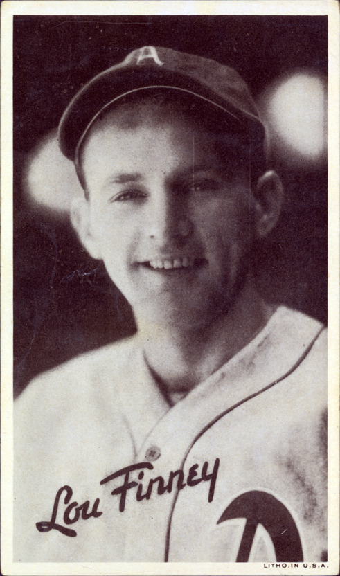 Favorite this☆ Lou Finney Description: Portrait of Lou Finney, baseball player for the Philadelphia Athletics. Wide Pens Premium (R314A) series. Printed on front: "Lou Finney. Litho. in U.S.A." Details Resource ID: hr001186 Subject: Finney, Lou (Louis Klopsche), 1910-1966 Baseball players--Pennsylvania--Philadelphia Philadelphia Athletics (Baseball team) Baseball cards Publisher: Goudey Gum Co. Date Issued: 1936 Format: 1 baseball card ; 5.5 x 3.25 in. Member of: Ernie Harwell Sports Collection Filing Location: Baseball Cards-Goudey Gum Co.-Wide Pens Premium (R314A)-1936-Finney, Lou Rights: Physical rights are retained by DPL. Copyright is retained in accordance with U.S. copyright laws.