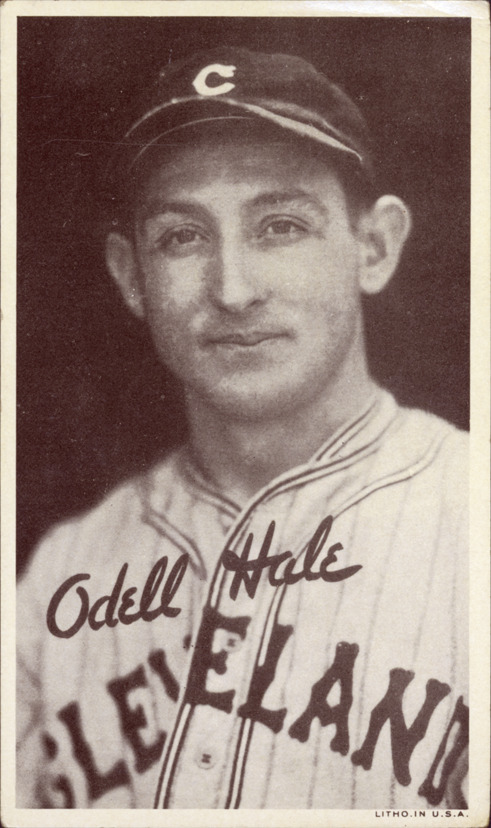 Favorite this☆ Odell Hale Description: Portrait of Odell Hale, baseball player for the Cleveland Indians. Wide Pens Premium (R314A) series. Printed on front: "Odell Hale. Litho. in U.S.A." Details Resource ID: hr001191 Subject: Hale, Odell (Arvel Odell), 1908-1980 Baseball players--Ohio--Cleveland Cleveland Indians (Baseball team) Baseball cards Publisher: Goudey Gum Co. Date Issued: 1936 Format: 1 baseball card ; 5.5 x 3.25 in. Member of: Ernie Harwell Sports Collection Filing Location: Baseball Cards-Goudey Gum Co.-Wide Pens Premium (R314A)-1936-Hale, Odell Rights: Physical rights are retained by DPL. Copyright is retained in accordance with U.S. copyright laws.