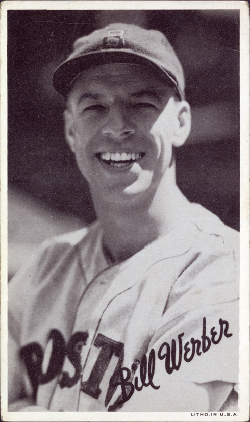 Favorite this☆ Bill Werber Description: Portrait of Bill Werber, baseball player for the Boston Red Sox. Wide Pens Premium (R314A) series. Printed on front: "Bill Werber. Litho. in U.S.A." Details Resource ID: hr001220 Subject: Werber, Bill, 1908- Baseball players--Massachusetts--Boston Boston Red Sox (Baseball team) Baseball cards Publisher: Goudey Gum Co. Date Issued: 1936 Format: 1 baseball card ; 5.5 x 3.25 in. Member of: Ernie Harwell Sports Collection Filing Location: Baseball Cards-Goudey Gum Co.-Wide Pens Premium (R314A)-1936-Werber, Bill Rights: Physical rights are retained by DPL. Copyright is retained in accordance with U.S. copyright laws.