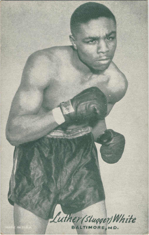 Favorite this☆ Slugger White Description: Portrait of boxer Slugger White. Exhibits series. Printed on front: "Luther (Slugger) White. Baltimore, Md. Made in U.S.A." Details Resource ID: hr001326 Subject: White, Slugger (Luther), 1918- African American boxers--Maryland--Baltimore Sports cards Publisher: Exhibit Supply Company Date Issued: 1947 to 1966 Format: 1 sports card ; 5.5 x 3.5 in. Member of: Ernie Harwell Sports Collection Filing Location: Boxing cards-Exhibit Supply Company-Exhibits-1947-1966-White, Slugger Rights: Physical rights are retained by DPL. Copyright is retained in accordance with U.S. copyright laws.