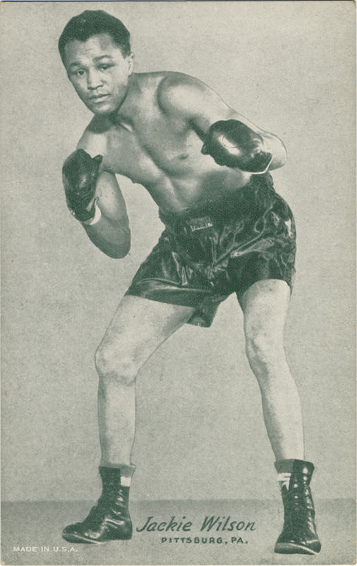 Favorite this☆ Jackie Wilson Description: Portrait of boxer Jackie Wilson. Exhibits series. Printed on front: "Jackie Wilson. Pittsburg, Pa. Made in U.S.A." Details Resource ID: hr001328 Subject: Wilson, Jackie (Jack), 1918-1956 African American boxers--Pennsylvania--Pittsburgh Sports cards Publisher: Exhibit Supply Company Date Issued: 1947 to 1966 Format: 1 sports card ; 5.5 x 3.5 in. Member of: Ernie Harwell Sports Collection Filing Location: Boxing cards-Exhibit Supply Company-Exhibits-1947-1966-Wilson, Jackie Rights: Physical rights are retained by DPL. Copyright is retained in accordance with U.S. copyright laws.