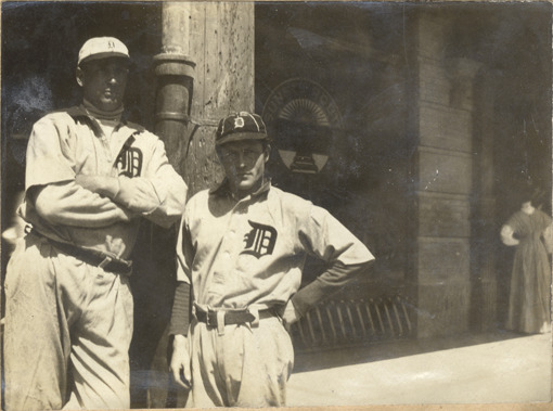Favorite this☆ Ed Summers and baseball player Winters Description: View of baseball players Ed Summers and Winters of the Detroit Tigers, posing in front of building. Handwritten below photograph: "Summers and Winters. San Antonio." Details Resource ID: hr001959 Subject: Summers, Ed (Oron Edgar), 1884-1953 Detroit Tigers (Baseball team) Baseball players--Michigan--Detroit Photographic prints Date Issued: 1910 Format: 1 photographic print mounted on stock ; 2.5 x 3.5 in. Member of: Ernie Harwell Sports Collection Filing Location: Oversize SB/Baseball-Detroit Baseball Co., 1910 Rights: Physical rights are retained by DPL. Copyright is retained in accordance with U.S. copyright laws.