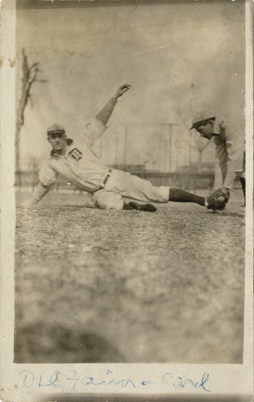 Favorite this☆ Del Gainer and Harry Lord Description: View of Del Gainer of the Detroit Tigers sliding into base; Gainer is tagged by baseball player Harry Lord. Handwritten on front: "Del Gainer & Lord." Handwritten on back: "Del Gainer, Harry Lord." Details Resource ID: hr002110 Subject: Gainer, Del (Dellos Clinton), 1886-1947 Lord, Harry (Harry Donald), 1882-1948 Baseball players Detroit Tigers (Baseball team) Photographic prints Postcards Date Issued: Unknown year Format: 1 postcard ; 5.5 x 3.5 in. Member of: Ernie Harwell Sports Collection Filing Location: Photographs-Action-Base running Rights: Physical rights are retained by DPL. Copyright is retained in accordance with U.S. copyright laws.