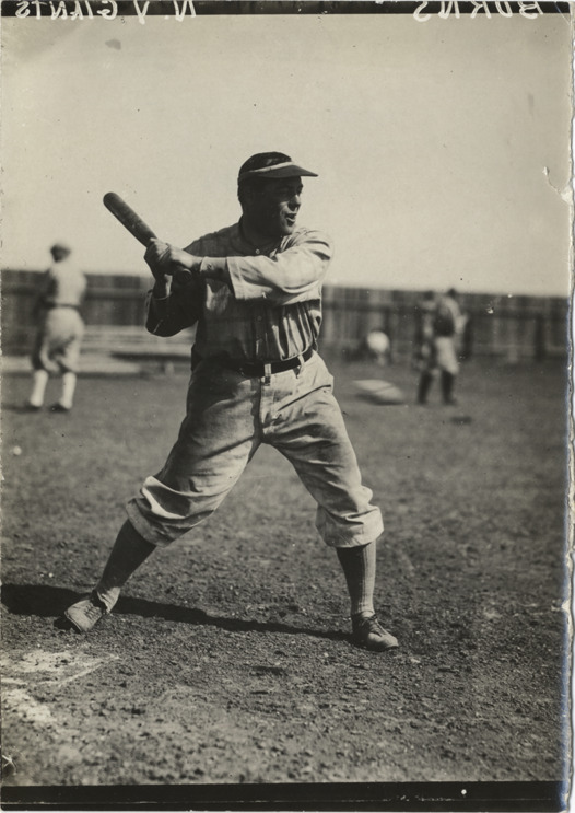 Favorite this☆ Baseball player at bat Description: View of baseball player at bat; other players stand in background. Printed on photograph in reverse: "Burns, N.Y. Giants." Handwritten on back: "Burns." Details Resource ID: hr002119 Subject: Baseball players Batting (Baseball) Photographic prints Date Issued: Unknown year Format: 1 photographic print ; 5 x 3.5 in. Member of: Ernie Harwell Sports Collection Filing Location: Photographs-Action-Batting Rights: Physical rights are retained by DPL. Copyright is retained in accordance with U.S. copyright laws.