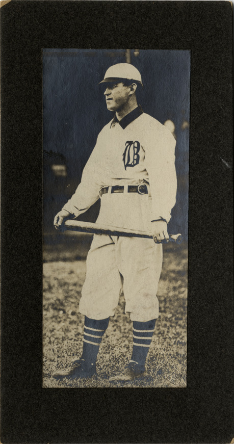 Favorite this☆ Baseball player holding baseball bat Description: View of baseball player holding baseball bat; player wears Brooklyn uniform. Details Resource ID: hr002120 Subject: Baseball players--New York (State)--New York Batting (Baseball) Photographic prints Date Issued: Unknown year Format: 1 photographic print mounted on mat board ; image 4.5 x 2 in. Member of: Ernie Harwell Sports Collection Filing Location: Photographs-Action-Batting Rights: Physical rights are retained by DPL. Copyright is retained in accordance with U.S. copyright laws.