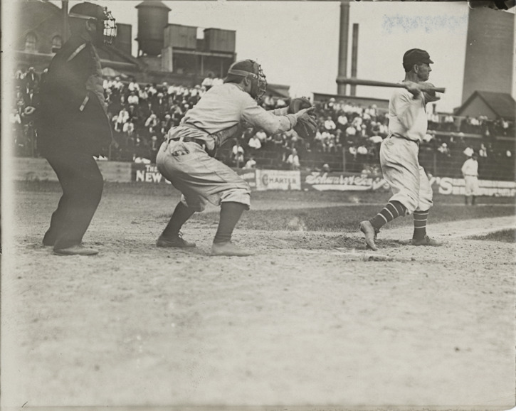 Favorite this☆ Baseball player at bat Description: View of baseball player at bat; catcher and umpire stand behind plate. Crowd fills bleachers in background. Details Resource ID: hr002121 Subject: Baseball players Catchers (Baseball) Baseball umpires Batting (Baseball) Photographic prints Date Issued: Unknown year Format: 1 photographic print ; 4 x 5 in. Member of: Ernie Harwell Sports Collection Filing Location: Photographs-Action-Batting Rights: Physical rights are retained by DPL. Copyright is retained in accordance with U.S. copyright laws.