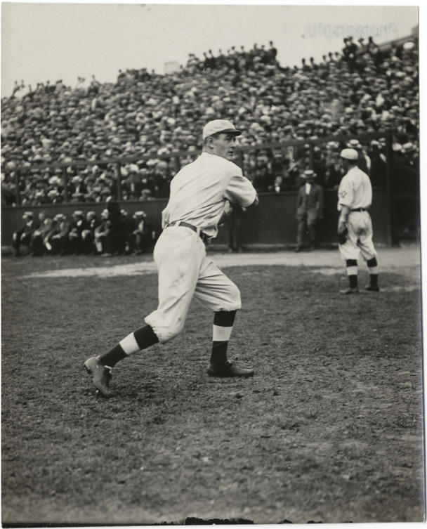 Favorite this☆ Baseball player running Description: View of baseball player running on field. Another player stands nearby; crowds fill bleachers in background. Details Resource ID: hr002225 Subject: Baseball players Fielding (Baseball) Photographic prints Date Issued: Unknown year Format: 1 photographic print ; 5 x 4 in. Member of: Ernie Harwell Sports Collection Filing Location: Photographs-Action-Fielding Rights: Physical rights are retained by DPL. Copyright is retained in accordance with U.S. copyright laws.