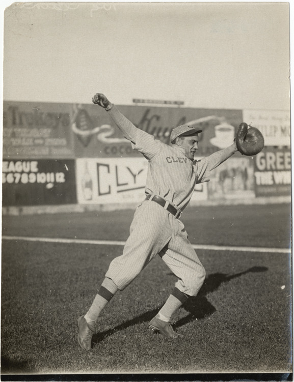 Favorite this☆ Baseball player in ballpark Description: View of baseball player wearing Cleveland uniform; player stands with outstretched arms and wears catcher's mitt. Billboards in background. Details Resource ID: hr002236 Subject: Baseball players--Ohio--Cleveland Fielding (Baseball) Photographic prints Date Issued: Unknown year Format: 1 photographic print ; 5 x 3.75 in. Member of: Ernie Harwell Sports Collection Filing Location: Photographs-Action-Fielding Rights: Physical rights are retained by DPL. Copyright is retained in accordance with U.S. copyright laws.