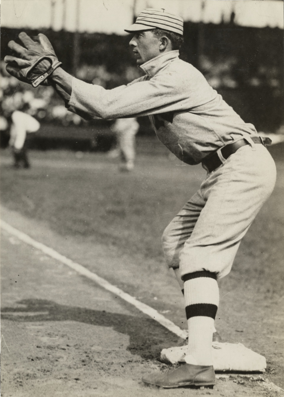 Favorite this☆ John Franklin Baker Description: View of baseball player John Franklin Baker standing on base. Handwritten on back: "J. Frank Baker, Philadelphia A.L." Details Resource ID: hr002279 Subject: Baker, John Franklin, 1886-1963 Baseball players Fielding (Baseball) Photographic prints Date Issued: Unknown year Format: 1 photographic print ; 9 x 6.5 in. Member of: Ernie Harwell Sports Collection Filing Location: Photographs-Action-Fielding Rights: Physical rights are retained by DPL. Copyright is retained in accordance with U.S. copyright laws.