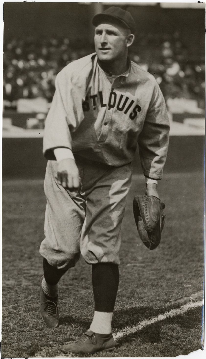 Portrait of Sam Agnew, catcher for the St. Louis Browns. Handwritten on back: "Samuel Agnew, St. Louis Am., Conlon."