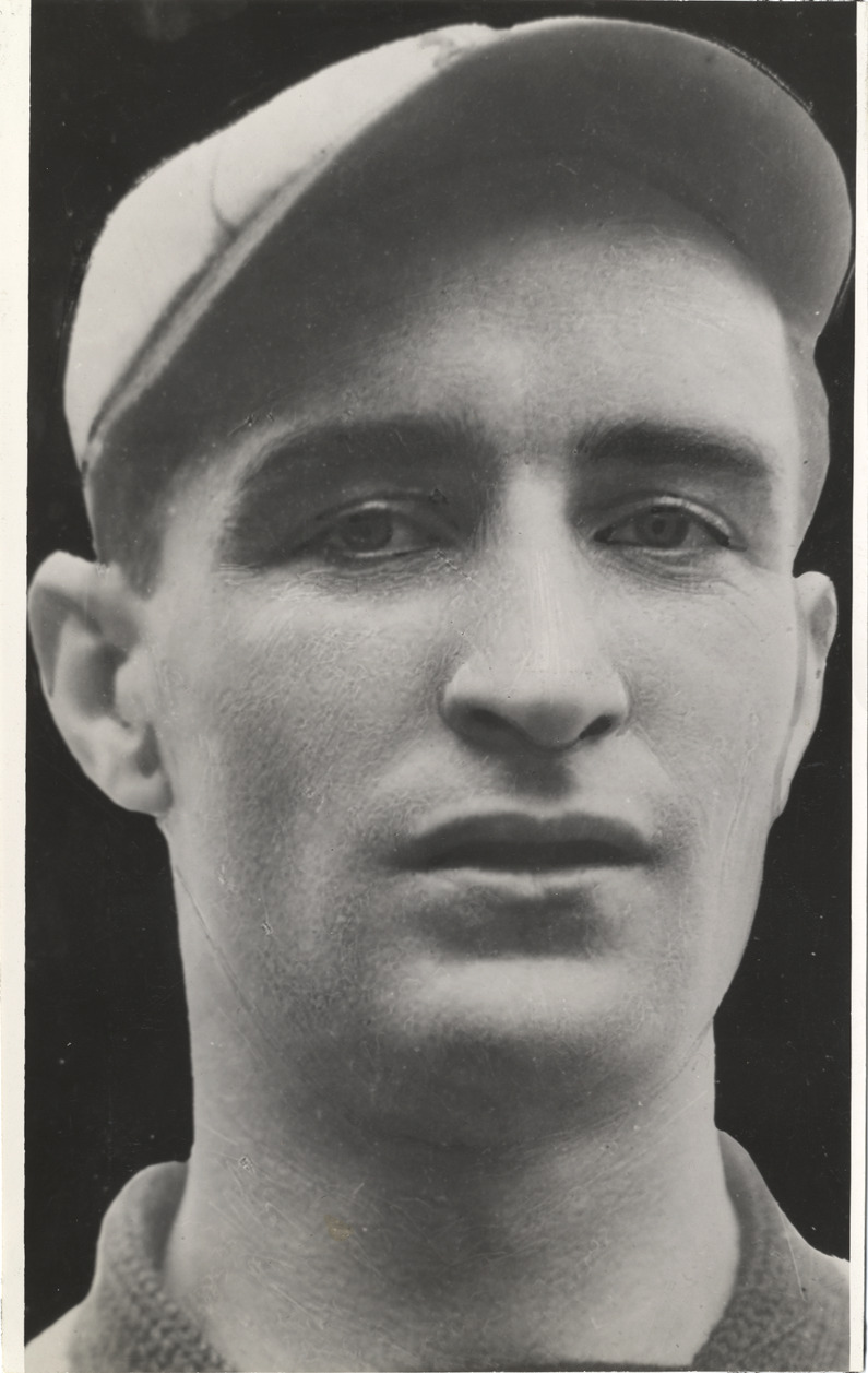 Close-up portrait of baseball player Jimmy Archer. Handwritten on back: "Jas. Archer, 1907."