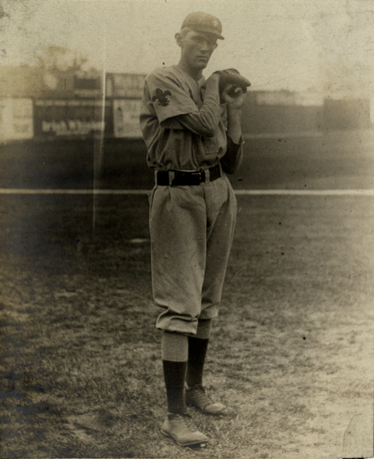 Bill Bailey on field, holding ball hidden by right-hand glove. Stamped on back: "Charles M. Conlon, 216 W. 111th St., New York." Handwritten on back: "Wm. Bailey at [?]. 1911. (St. L. Am.)"