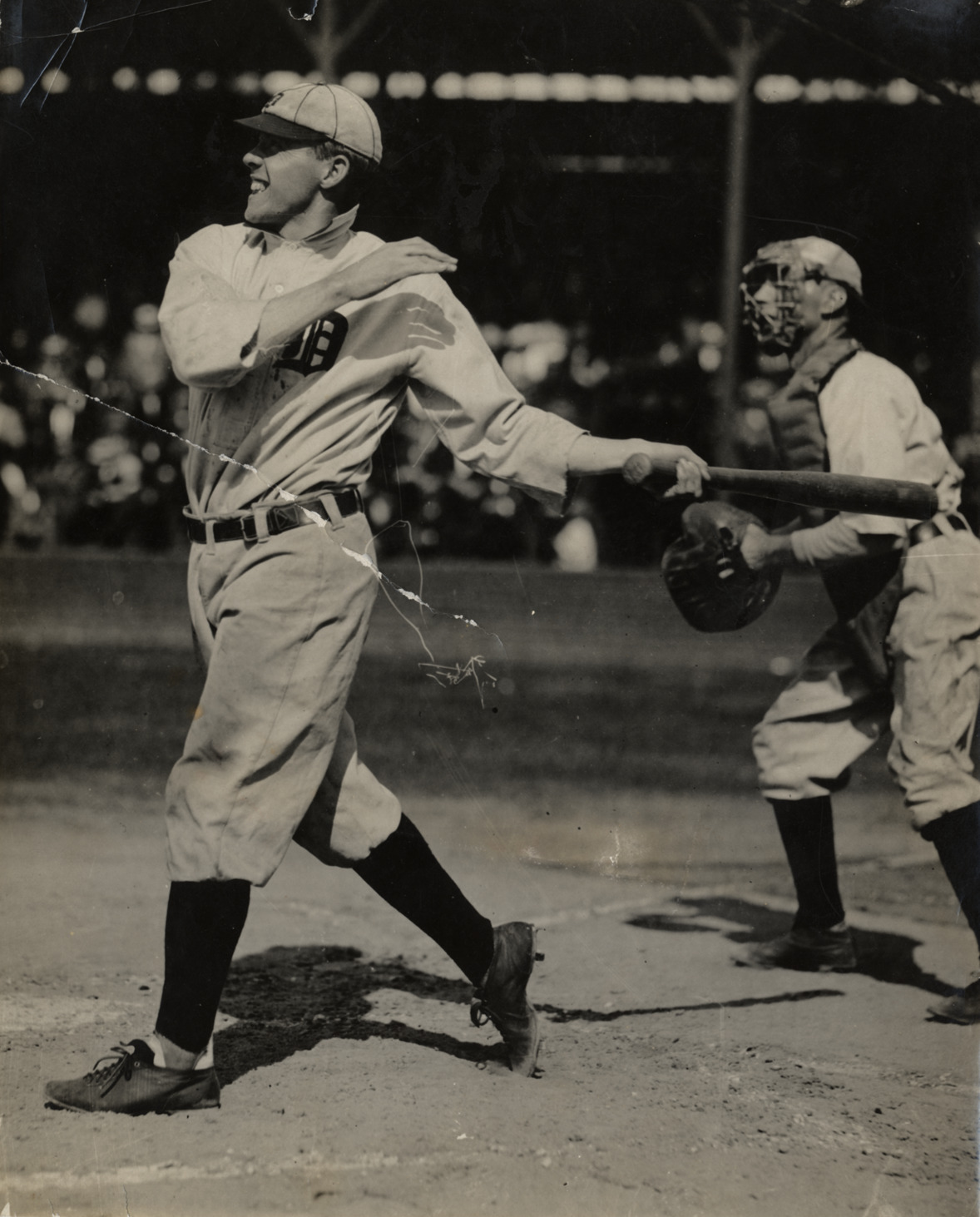 Favorite this☆ Paddy Baumann Description: Detroit Tigers second baseman Paddy Baumann, batting. Handwritten on back: "Bauman [sic]." Details Resource ID: hr002409 Subject: Baumann, Paddy (Charles John), 1885-1969 Baseball players--Michigan--Detroit Detroit Tigers (Baseball team) Photographic prints Date Issued: 1911 to 1914 Format: 1 photographic print ; 10 x 8 in. Member of: Ernie Harwell Sports Collection Filing Location: Photographs-Biography-Baumann, Paddy Rights: Physical rights are retained by DPL. Copyright is retained in accordance with U.S. copyright laws.