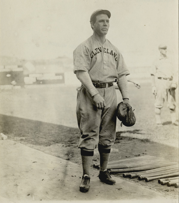 Cleveland Naps catcher Harry Bemis on field, next to bats on ground. Handwritten on back: "Bemis. Cleveland. 1909." Stamped on duplicate back: "Charles M. Conlon, 216 W. 111th St., New York."