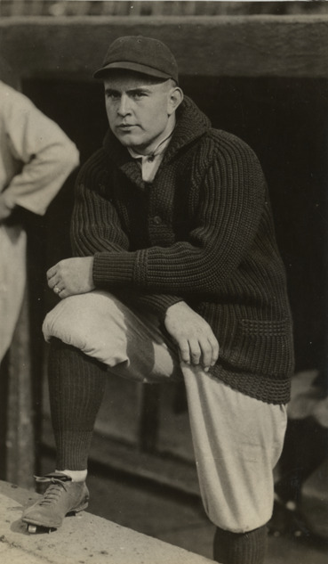 Joe Birmingham standing in dugout. Handwritten on back: "Joe Birmingham. Cleveland. 1912. 81."