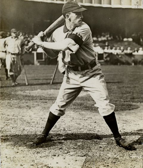 Pittsburgh Pirates third baseman Bobby Byrne, batting on field. Handwritten on back: "Robt. Byrnes [sic]. 1909." Stamped on duplicate back: "Charles M. [Conlon], 216 W. 111th St., [New York]."