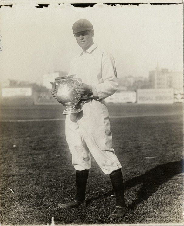 Favorite this☆ Hal Chase Description: Portrait of Hal Chase, baseball player for the New York Highlanders, holding a loving cup. Stamped on back: "Charles M. Conlon, 216 W. 111th St., New York." Handwritten on back: "Chase, N.Y. Am." Details Resource ID: hr002587 Creator: Conlon, Charles M. Subject: Chase, Hal, 1883-1947 Baseball players--New York (State)--New York Baseball teams--New York (State)--New York Photographers--New York (State)--New York Photographic prints Date Issued: 1909 Format: 1 photographic print ; 5 x 4 in. Member of: Ernie Harwell Sports Collection Filing Location: Photographs-Biography-Chase, Hal Rights: Physical rights are retained by DPL. Copyright is retained in accordance with U.S. copyright laws.