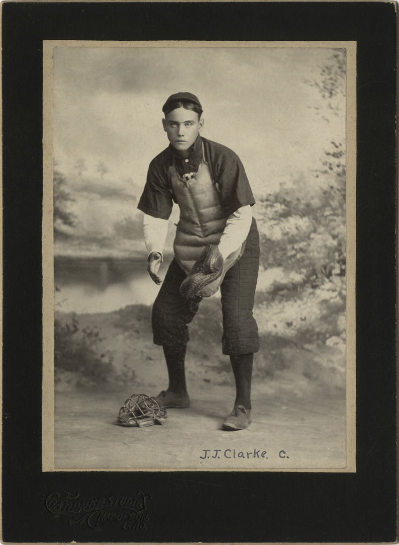 Favorite this☆ Jay Justin Clarke Description: Portrait of catcher Jay Justin Clarke. Handwritten on front: "J.J. Clarke, C." Embossed on front: "Gardner Studio, Napoleon, Ohio." Details Resource ID: hr002606 Subject: Clarke, Jay Justin, 1882-1949 Catchers (Baseball) Photographic prints Date Issued: Unknown year Format: 1 photographic print mounted on mat board ; image 5.5 x 4 in. Member of: Ernie Harwell Sports Collection Filing Location: Photographs-Biography-Clarke, Jay (Nig) Rights: Physical rights are retained by DPL. Copyright is retained in accordance with U.S. copyright laws.