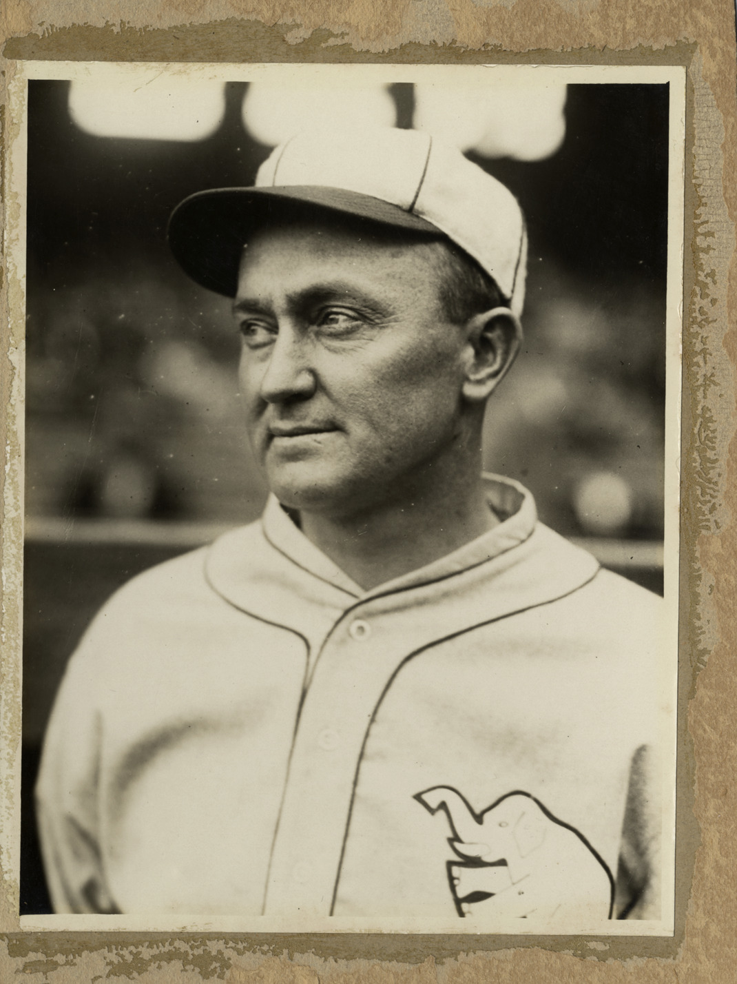 Favorite this☆ Ty Cobb Description: Portrait of Ty Cobb, baseball player for the Philadelphia Athletics. Mat board is damaged. Handwritten on back: "Cobb, Tyrus R." Details Resource ID: hr002628 Subject: Cobb, Ty, 1886-1961 Baseball players--Pennsylvania--Philadelphia Philadelphia Athletics (Baseball team) Photographic prints Date Issued: 1905 to 1926 Format: 1 photographic print mounted on mat board ; image 8.5 x 6.5 in. Member of: Ernie Harwell Sports Collection Filing Location: Photographs-Biography-Cobb, Tyrus (Ty) Rights: Physical rights are retained by DPL. Copyright is retained in accordance with U.S. copyright laws.
