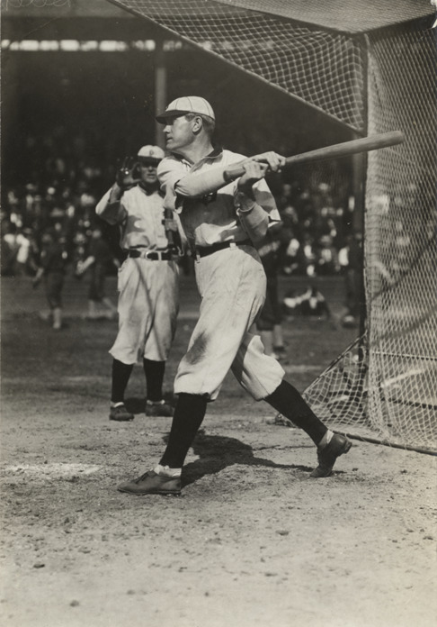 Favorite this☆ Jim Delahanty Description: Portrait of Jim Delahanty, baseball player for the Detroit Tigers, swinging a baseball bat. Another player stands in background. Handwritten on back: "Jim Delehanty [sic], Tigers." Details Resource ID: hr002770 Subject: Delahanty, Jim (James Christopher), 1879-1953 Baseball players--Michigan--Detroit Detroit Tigers (Baseball team) Photographic prints Date Issued: 1909 to 1912 Format: 1 photographic print ; 4.75 x 3.25 in. Member of: Ernie Harwell Sports Collection Filing Location: Photographs-Biography-Delahanty, Jim Rights: Physical rights are retained by DPL. Copyright is retained in accordance with U.S. copyright laws.