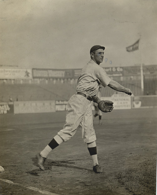 Favorite this☆ Art Devlin Description: Art Devlin, New York Giants third baseman, throwing on field. Stamped on back: "Charles M. Conlon, 216 W. 111th St., New York." Handwritten on back: "Art Devlin. N.Y. Nat. 1911." Details Resource ID: hr002781 Creator: Conlon, Charles M. Subject: Devlin, Art (Arthur McArthur), 1879-1948 Baseball players--New York (State)--New York New York Giants (Baseball team) Photographers--New York (State)--New York Photographic prints Date Issued: 1911 Format: 1 photographic print ; 4.25 x 3.5 in. Member of: Ernie Harwell Sports Collection Filing Location: Photographs-Biography-Devlin, Arthur Rights: Physical rights are retained by DPL. Copyright is retained in accordance with U.S. copyright laws.