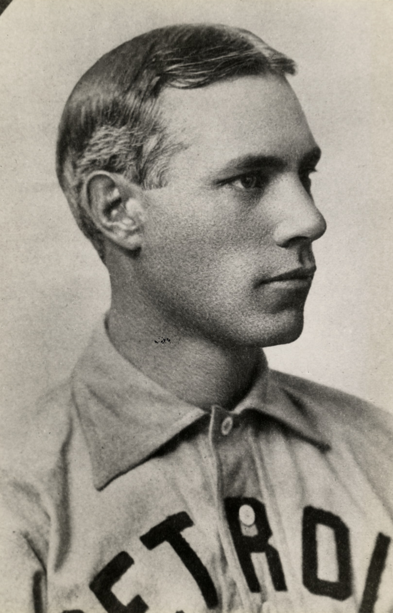 Close-up portrait of Pop Dillon, Detroit Tigers first baseman. Stamped on back: "Reproduced by Geo. Burke, 847 Belmont Ave., Chicago, Ill." Handwritten on back: "Frank Dillon. 1900[sic]-02."