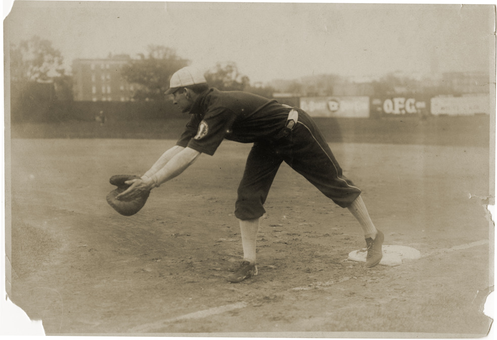 Favorite this☆ Jiggs Donahue Description: Jiggs Donahue, Chicago White Sox first baseman, on base reaching for ball. Handwritten on back: "Jiggs Donahue. White Sox." Handwritten on duplicate back: "1906." Details Resource ID: hr002795 Subject: Donahue, Jiggs (John Augustus), 1879-1913 Baseball players--Illinois--Chicago Chicago White Sox (Baseball team) Photographic prints Date Issued: 1906 Format: 1 photographic print ; 4.5 x 6.5 in. Member of: Ernie Harwell Sports Collection Filing Location: Photographs-Biography-Donahue, Jiggs Rights: Physical rights are retained by DPL. Copyright is retained in accordance with U.S. copyright laws.