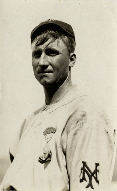 Portrait of Charlie Faust, New York Giants baseball player. Handwritten on back: "Faust. N.Y. Nat."