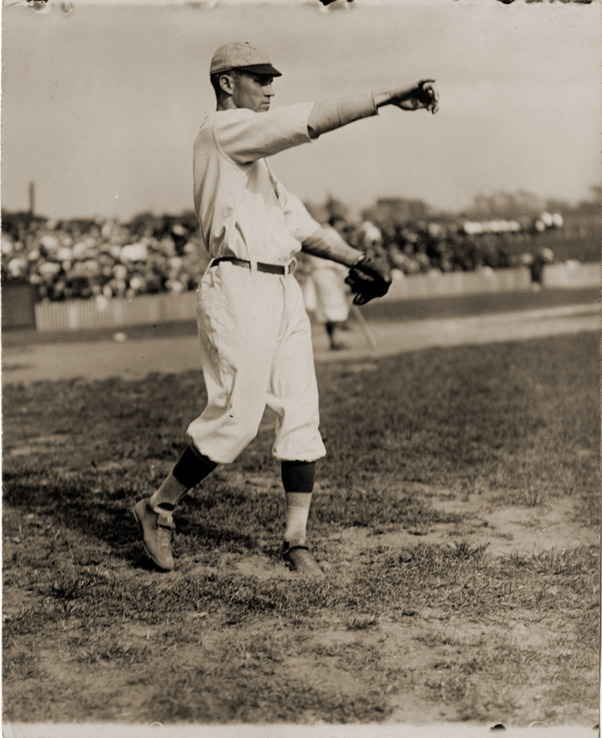 Jersey City baseball player Gardner, throwing on field. Handwritten on back: "Gardner (Jersey City)."