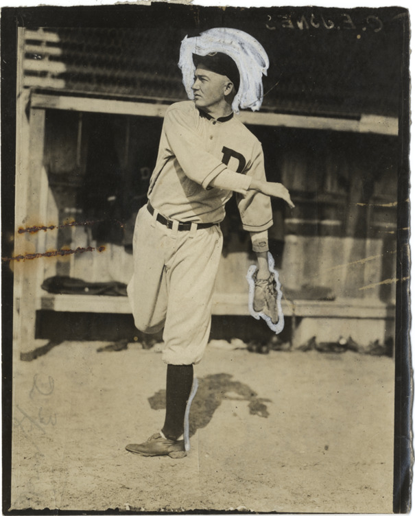 Portrait of Deacon Jones, pitcher for the Detroit Tigers. Handwritten on front in reverse: "C.E. Jones." Handwritten on back: "C.E. Jones."