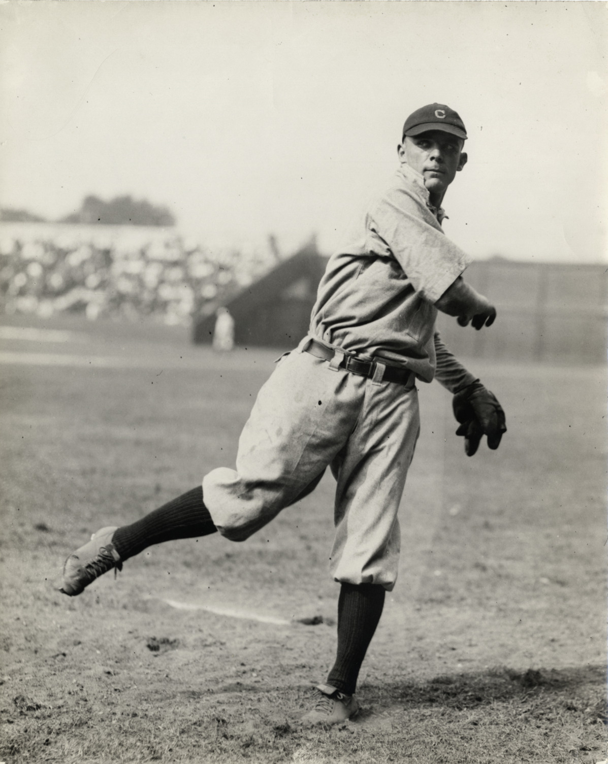 Portrait of Gene Krapp, pitcher for the Cleveland Naps. Handwritten on back: "Rubber Krapp."