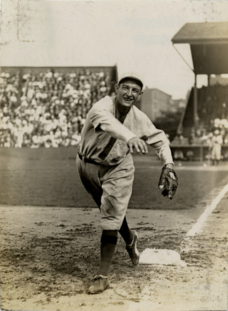 Pittsburgh Pirates first baseman Bill McKechnie, throwing on field. Stamped on back: "Charles M. Conlon, 216 W. 111th St., New York." Handwritten on back: "McKechnie (Pittsburg National). 1911."