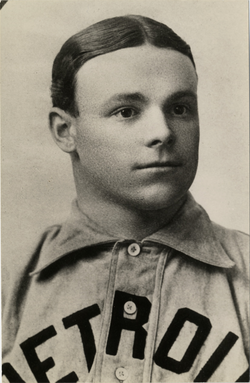 Studio portrait of Detroit Tigers pitcher George Mullin. Stamped on back: "Reproduced by Geo. Burke, 847 Belmont Ave., Chicago, Ill." Handwritten on back: "Geo. Mullin. 1902-1912."