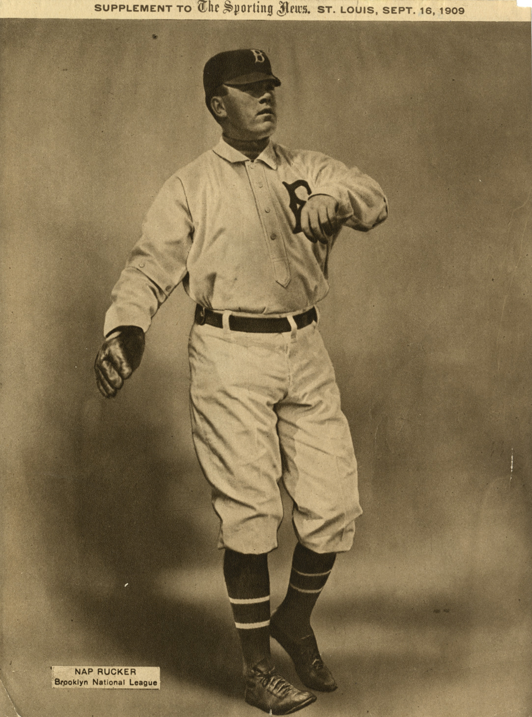 Favorite this☆ Nap Rucker Description: Portrait of Nap Rucker, pitcher for the Brooklyn Superbas. Printed on front: "Nap Rucker, Brooklyn National League. Supplement to the Sporting News, St. Louis, Sept. 16, 1909." Details Resource ID: hr003641 Subject: Rucker, Nap (George), 1884-1970 Pitchers (Baseball)--New York (State)--New York Baseball teams--New York (State)--New York Photographic prints Date Issued: 1909 Format: 1 photographic print ; 10 x 7.25 in. Member of: Ernie Harwell Sports Collection Filing Location: Photographs-Biography-Rucker, Nap Rights: Physical rights are retained by DPL. Copyright is retained in accordance with U.S. copyright laws.
